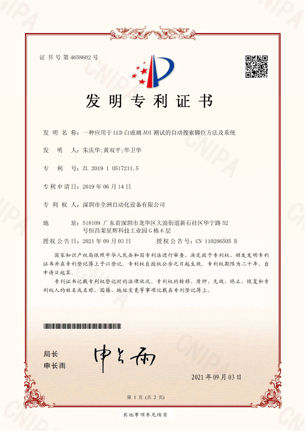 深圳市全洲自動(dòng)化設(shè)備有限公司是一家集研發(fā)、生產(chǎn)、銷售為一體的國(guó)家高新技術(shù)企業(yè),擁有一支強(qiáng)大、資深的技術(shù)研發(fā)團(tuán)隊(duì),及完善的生產(chǎn)、銷售服務(wù)隊(duì)伍。公司致力于LCD和半導(dǎo)體行業(yè)的智能制造,先后推出了全自動(dòng)貼片、裝腳、點(diǎn)膠、固化、切腳流水線,全自動(dòng)LCD AOI測(cè)試機(jī)、COG/COB自動(dòng)AOI測(cè)試機(jī)、TFT多畫(huà)面測(cè)試機(jī)。并破解行業(yè)難題,研發(fā)了分辨率達(dá)微米級(jí)的LCD整模圖像檢測(cè)機(jī)等高端設(shè)備,可應(yīng)用于LCD/TFT/集成電路/晶圓檢測(cè)等領(lǐng)域,有效提升生產(chǎn)和測(cè)試效率,保障產(chǎn)品品質(zhì)。受到了新老客戶的歡迎和好評(píng),與業(yè)內(nèi)眾多知名企業(yè)建立了長(zhǎng)期合作伙伴關(guān)系。公司秉承“誠(chéng)信經(jīng)營(yíng)、科技創(chuàng)新”的經(jīng)營(yíng)理念和“團(tuán)結(jié)、合作、進(jìn)取”的企業(yè)精神,竭誠(chéng)為客戶提供優(yōu)質(zhì)的產(chǎn)品,完善的技術(shù)服務(wù)!讓我們攜手,互利雙贏,共同發(fā)展,一起邁向企業(yè)美好的新未來(lái)、新坐標(biāo)!